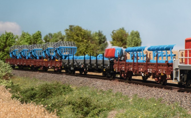 Exklusiv für mhi-Händler erscheint die BR 294 in aktuellen Zustand der Epoche VI. Das digitale Modell (Art. 39900) besitzt viele zusätzliche technische Raffinessen, wie zum Beispiel einen in Fahrtrichtung drehbaren Lokführer, beidseitige Telex-Kupplungen, Imitate der automatischen Kupplungen und viele Licht- und Geräuschfunktionen. Passend zur Lok werden zwei Güterwagensets angeboten die landwirtschaftliche Geräte transportieren.