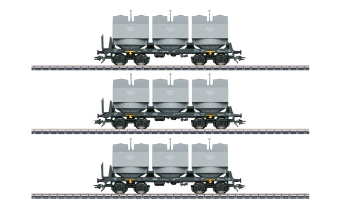 In den 1970er Jahren wurde der Containerverkehr auch auf der Bahn zu einem immer wichtigeren Geschäftsbereich. Während anfänglich noch einzelne Wagen mit Containern zu befördern waren, wurden in 80er-Jahren schon meist Ganzzüge von den innländischen Containerterminals zu den Häfen Hamburg und Bremerhaven einegsetzt. Einen solchen Zug kann man mit diesem Wagenset nachstellen. Das Set ist mit Containern der unterschiedlichsten Reedereien beladen. Auch im Deutsch-Deutschen Warenverkehr wurden Container genutzt. So sind hier zum Beispiel sowohl West- als auch Ostdeutsche Container auf diesem Zug verladen.